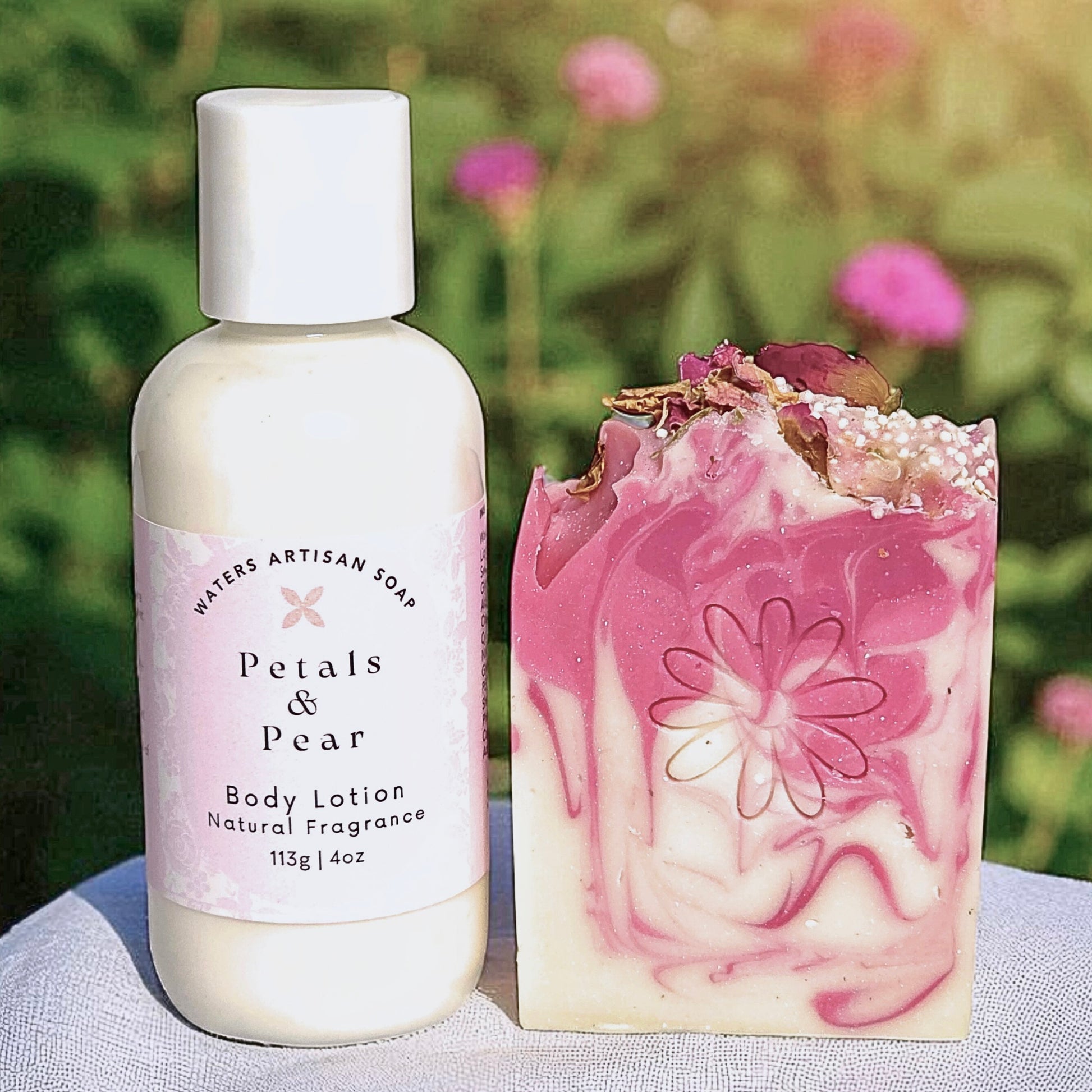 Imagine the romance of a blooming rose garden meeting the sweetness of ripe pears. Our Petals & Pear lotion captures that elegant moment in a luxurious body lotion that leaves your skin feeling soft and beautifully scented.